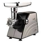 MODEL- V5266 VENDOR- VILLAWARE FEATURES- Electric Meat Grinder Equipped with an extra powerful 375-watt motor this convenient meat grinder is specially designed to grind quickly and thoroughly to precise specifications even under the heaviest loads. So whether it is fresh game or the finest cuts of beef making homemade sausage meat loaf and stew is easy. The appliance provides a die- cast feed screw and a number-five head with 2-1/8-inch-diameter cutting plates. To ensure quality performance the unit's feed- screw shaft has a rubber seal that blocks liquid backup into the motor drive its reverse switch eliminates jamming and a reset fuse provides overload protection. A food plunger is included along with a recipe and instruction booklet. Housed in durable stainless steel.* Stainless-steel meat grinder equipped with powerful 375-watt motor * Die-cast feed screw and a #5 head with 2-1/8-inch-diameter cutting plates * Feed-screw shaft has rubber seal that blocks liquid backup into motor drive. * Reverse switch eliminates jamming; reset fuse provides overload protection.